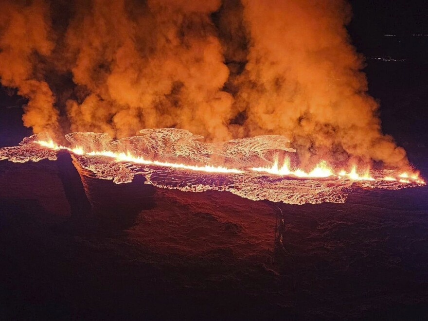 Source : www.pbslearningmedia.orgA volcano erupts in Iceland, sending lava flowing toward a nearby